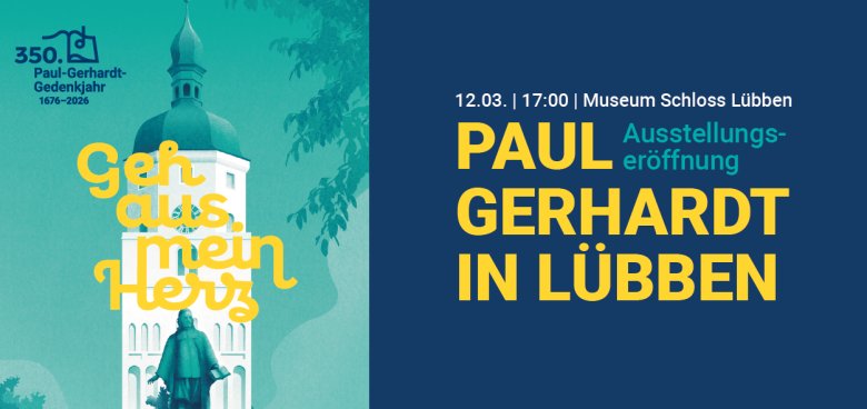 Ein zentraler Höhepunkt des Gedenkjahres ist die Sonderausstellung „Paul Gerhardt in Lübben“ im Museum Schloss Lübben. Die Ausstellung wird am 12. März 2026 um 17:00 Uhr (Einlass ab 16:30 Uhr) im Wappensaal des Schlosses (Ernst-von-Houwald-Damm 14) feierlich eröffnet. Der Eintritt ist frei.