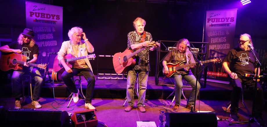 Am 21. September um 20:00 Uhr übernimmt Rocklegende Dieter "Quaster" Hertrampf, Gitarrist der Kultband Puhdys, das Mikrofon der Antenne-Brandenburg-Bühne auf dem Marktplatz. Gemeinsam mit langjährigen musikalischen Weggefährten und besonderen Gästen lässt er die großen Zeiten der Puhdys wieder aufleben - mit Klassikern, aber auch selten gespielten Songs, die das Herz jedes Ostrock-Fans höherschlagen lassen.