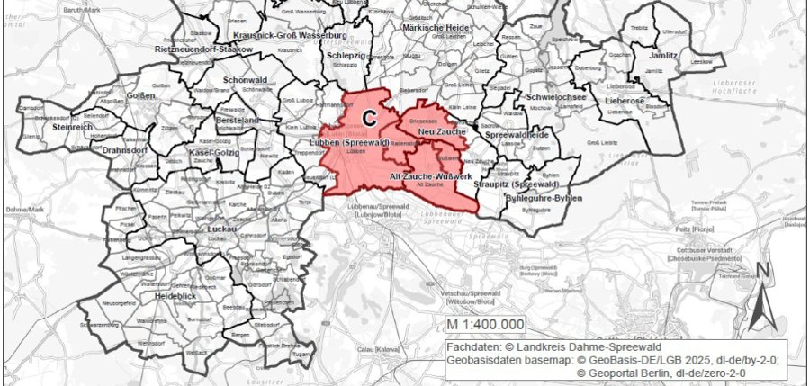 - Gemeinde Lübben (Spreewald) mit der Gemarkungen Lübben und Radensdorf