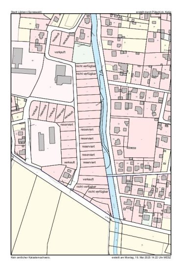 Die Stadt Lübben (Spreewald) ermöglicht mit diesem Grundstücksangebot den Interessenten die Abgabe eines schriftlichen Kaufpreisangebotes. Die Entscheidung, ob, wann, an wen und zu welchen Konditionen verkauft wird, ist freibleibend. Bei Nichtberücksichtigung von Angeboten können Bieter keine Ansprüche ableiten.ÜBERSICHT