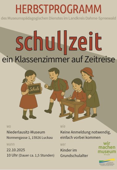 Am 22.10.2025 gibt es einen öffentlichen Termin für unser Programm "schul|zeit" im Niederlausitz-Museum Luckau.