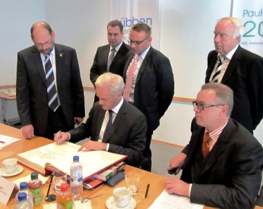 Ex-Bundesverkehrsminister Dr. Peter Ramsauer trug sich am 13. Oktober 2011 ins „Goldene Buch“ der Stadt Lübben ein und verband dies mit einem Arbeitsgespräch im Rathaus. Eingeladen von damaligen Bundestagsmitglied Michael Stübgen, diskutierten Ramsauer, Bürgermeister Lothar Bretterbauer a. D., Finsterwaldes Ex-Bürgermeister Jörg Gampe sowie Landtagsabgeordneter Rainer Genilke über den Ausbau der B 87 und die Umverlegung der B 96. Ramsauer betonte, dass sich die Umgehungsstraße Lübben noch im frühen Planungsstadium befinde: Nach der Linienbestimmung folge das Planfeststellungsverfahren. Trotz schwieriger Rahmenbedingungen im Spreewald sehe er gute Chancen, dass das Projekt im Investitionsrahmenplan bleibt. Einen Spatenstich 2015/2016 wollte er jedoch nicht zusagen, da Klagen möglich seien. Die Kosten werden auf rund 30 Mio. Euro geschätzt. Der damalige Bürgermeister Bretterbauer unterstrich die Dringlichkeit: Ohne Entlastung drohe Lübbens Status als Erholungsort zu gefährden. Bund, Land und Stadt müssten nun gemeinsam handeln.