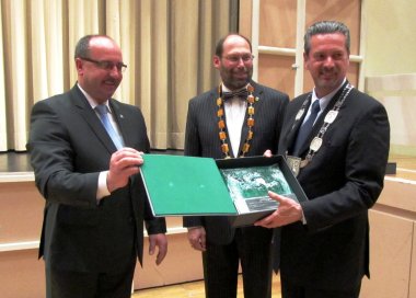 Zum Abschluss überreichte Oberbürgermeister Fried einen Scheck über 1000 Euro an Bürgermeister Bretterbauer. Beide Städte hatten zuvor vereinbart, auf Geschenke zu verzichten und stattdessen Spenden für Bedürftige zu sammeln. Lübben hatte 600 Euro für „Neunkircher in Not“ bereitgestellt, Fried übergab nun die Spende für die Aktion „Wir helfen“.