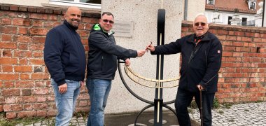 Am 27. Oktober fand an der Lübbener Sonnenuhr an der Stadtmauer zum Ernst-von-Houwald-Damm die traditionelle Zeitumstellung statt. Gemeinsam mit Bürgermeister Jens Richter und Erbauer Heinz-Dieter Wanske wurde zugleich die Betreuung des Kunstwerks offiziell an den Nachfolger Holger Zittlau übergeben.