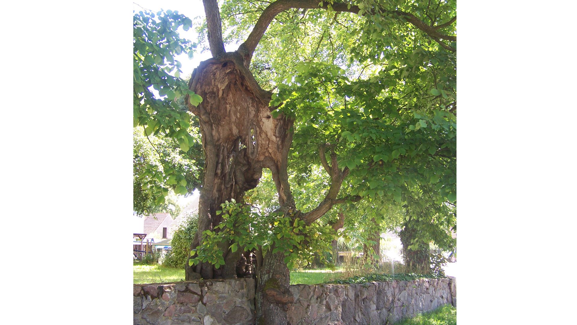 Glockenulme an der Friedhofsmauer in Motzen, Foto: Günter Schönfeld, Lizenz: Tourismusverband Dahme-Seenland e.V.