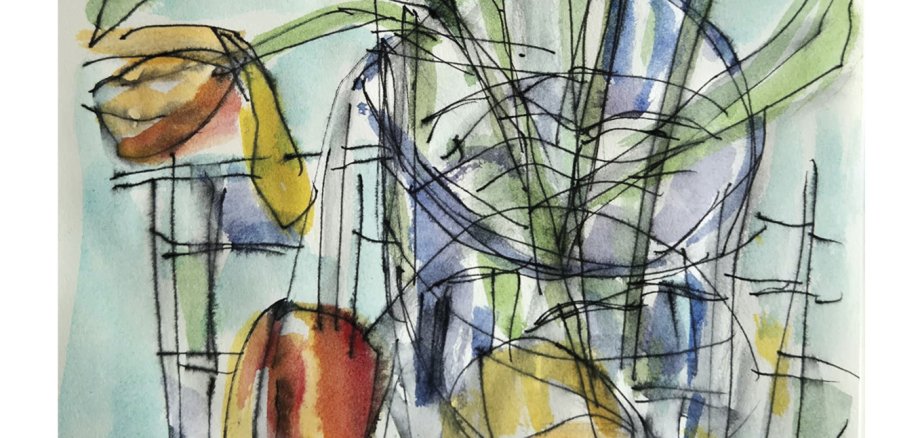Freuen Sie sich auf in Farben schwelgende Malerei, zart gestaltete Liedblätter, vielschichtige Aquarelle und colorierte Radierungen, Momente des Keimens und des Verfalls in Ton.